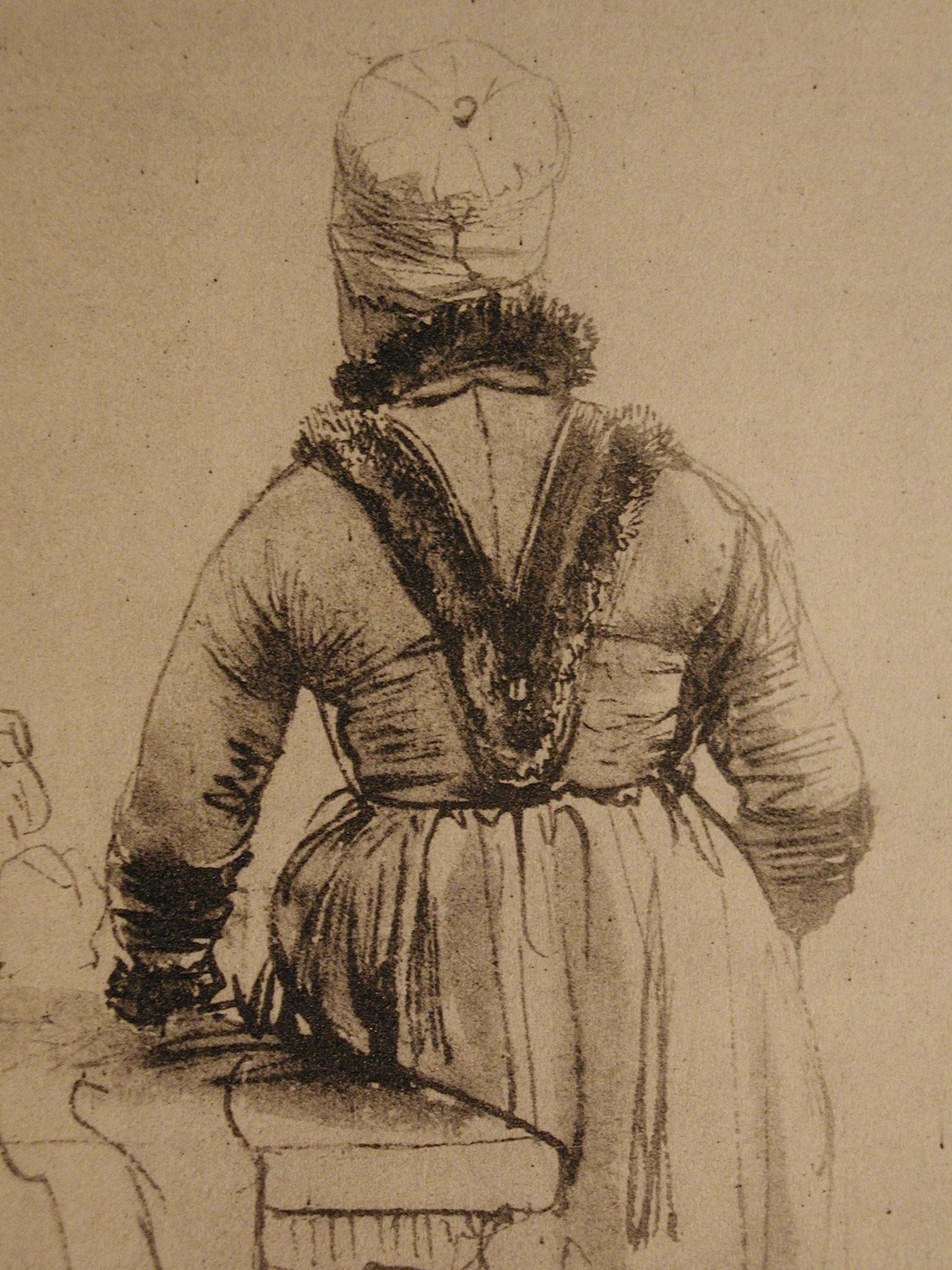 This example shows how Rembrandt makes a superb drawing of her back; it is one of the greatest drawings. It has got all the sense of the physicality; the sense of the light coming off the hat, and through the fur. It is an absolutely gorgeous drawing. The front view which is observed in the mirror is very dull and he has not drawn in one hand. The real body was not allowing him to see the hand in the reflection. He could not see it, so he would not draw it. (see maquette below)